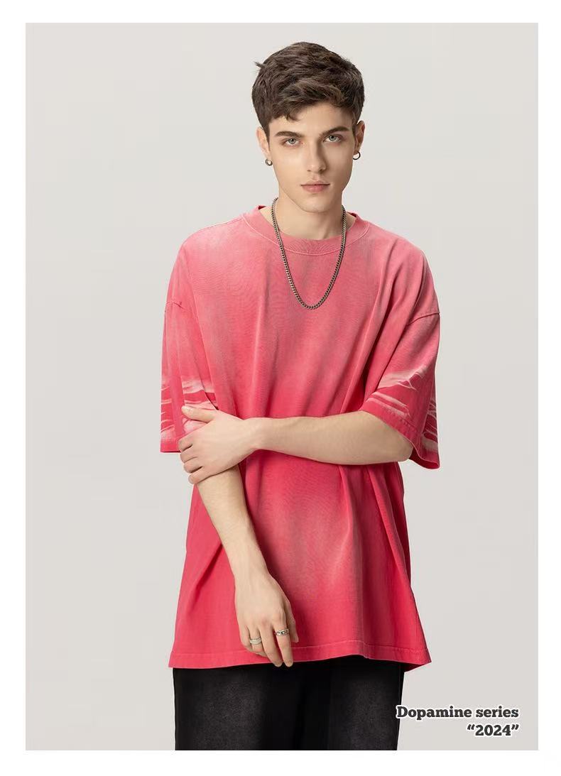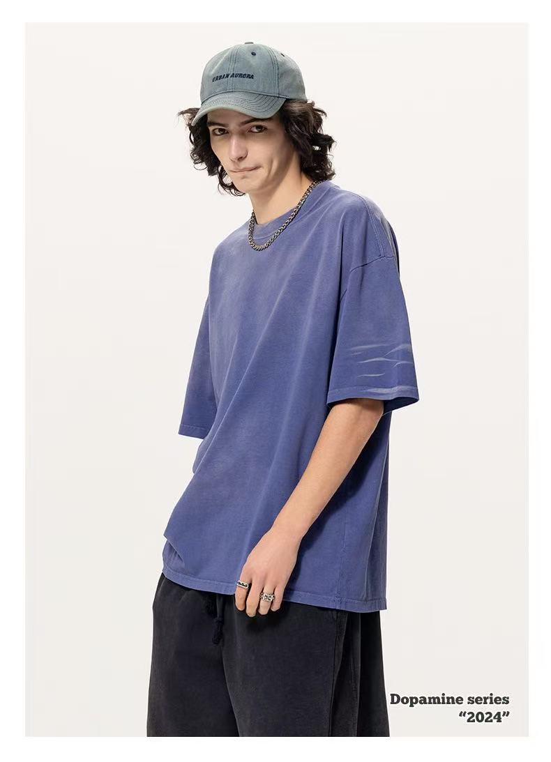 2024 Men's Heavyweight T-Shirt - 100% Cotton with Vintage Sprayed Whiskering