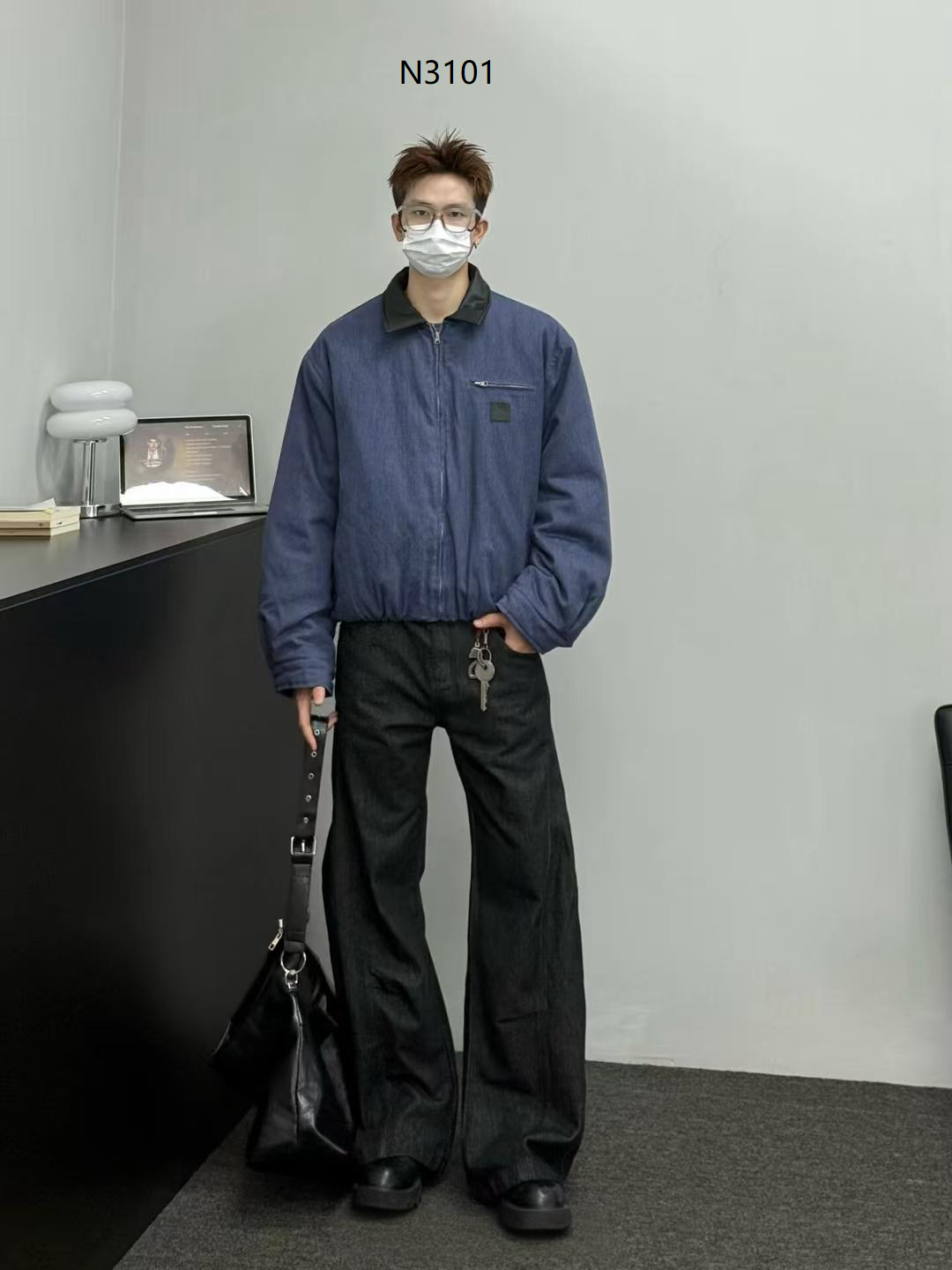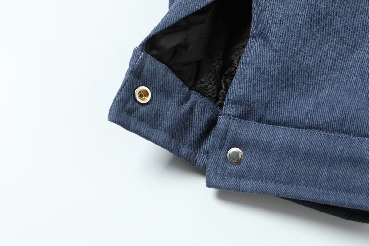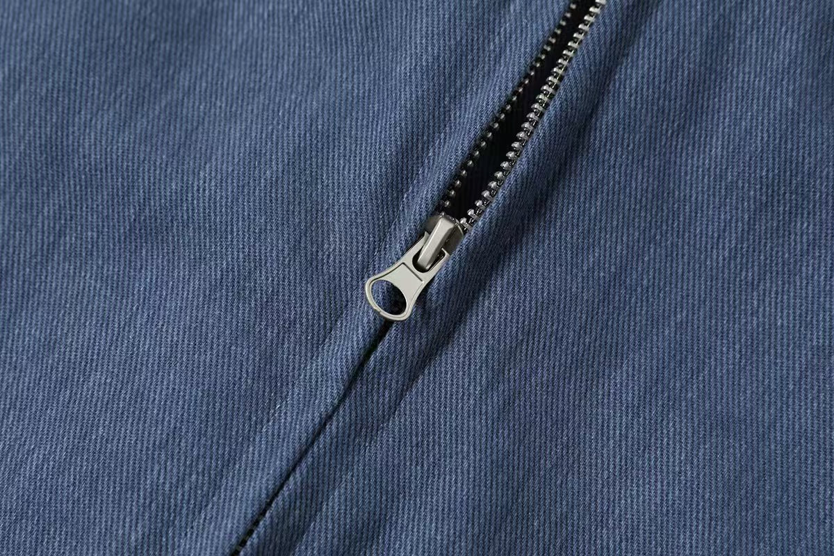 Name: N3101 Barn Leather Collar Cotton Zip-Up Jacket