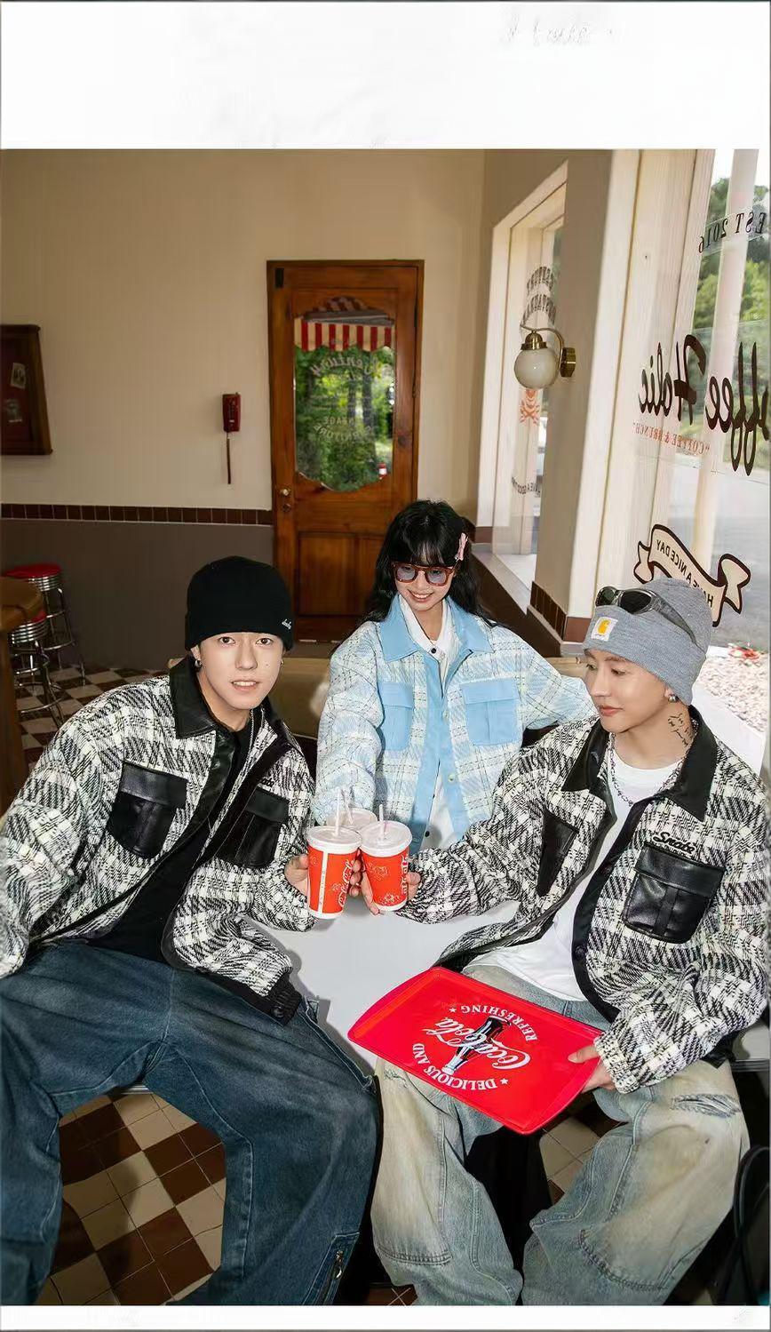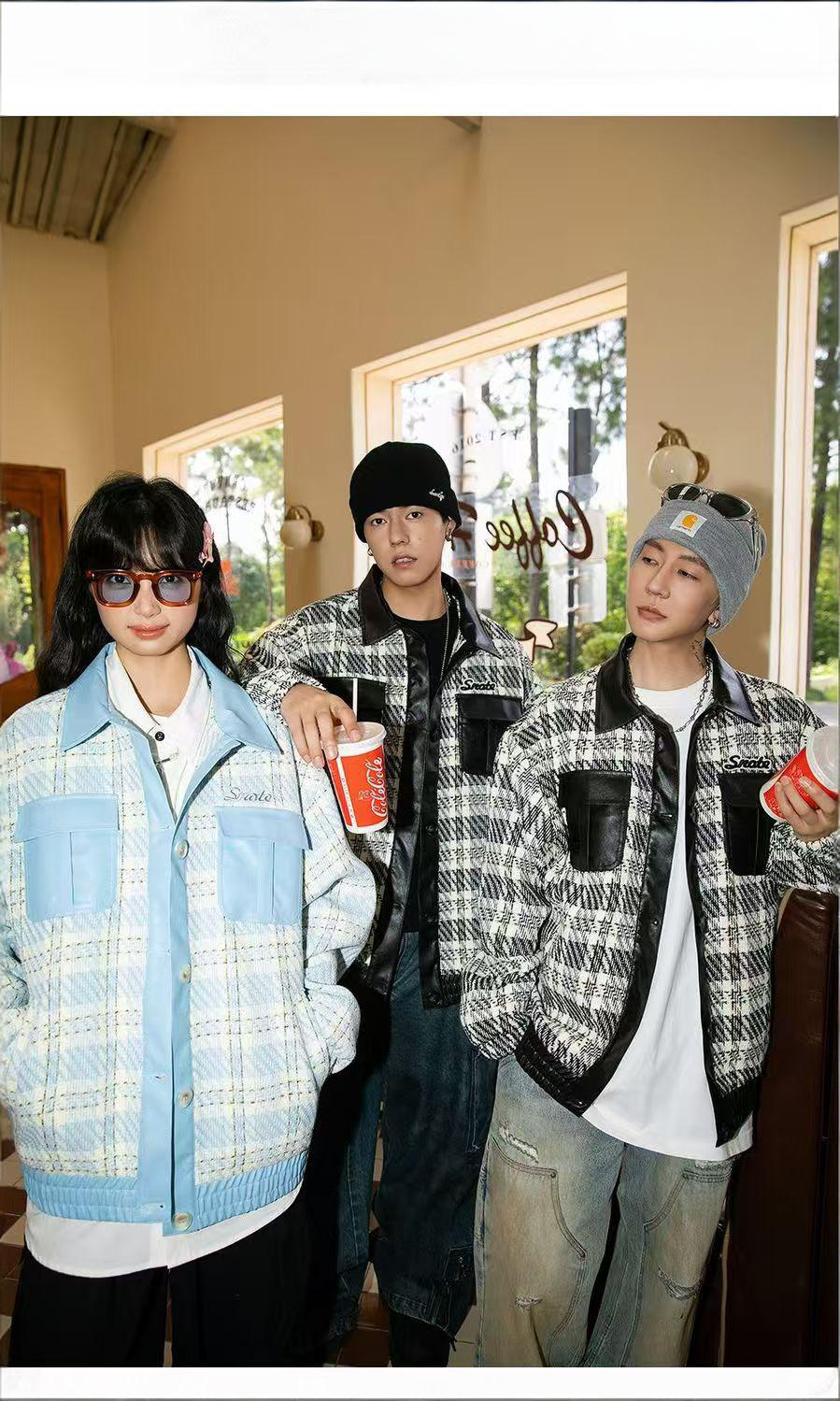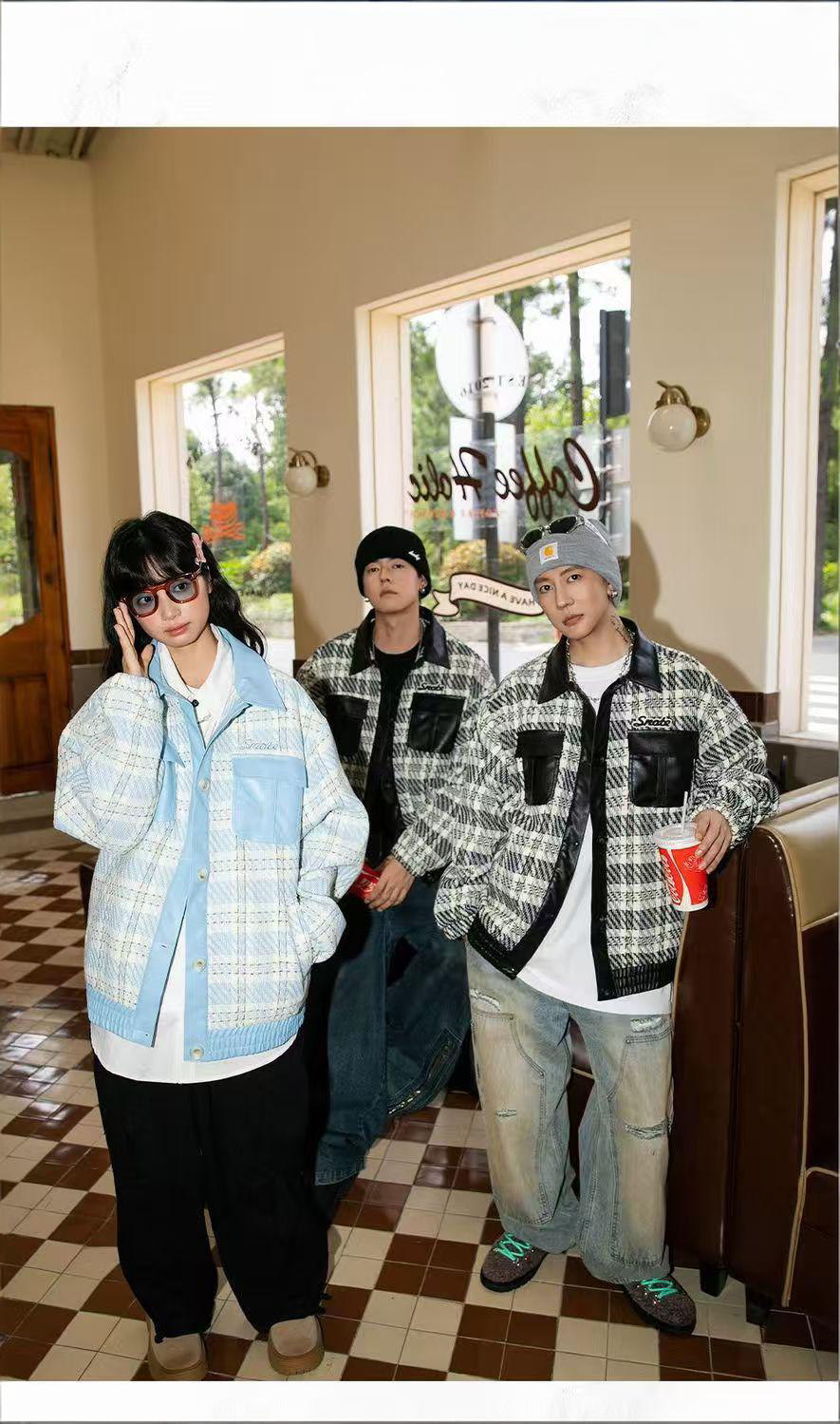 Checkered leather American vintage jacket