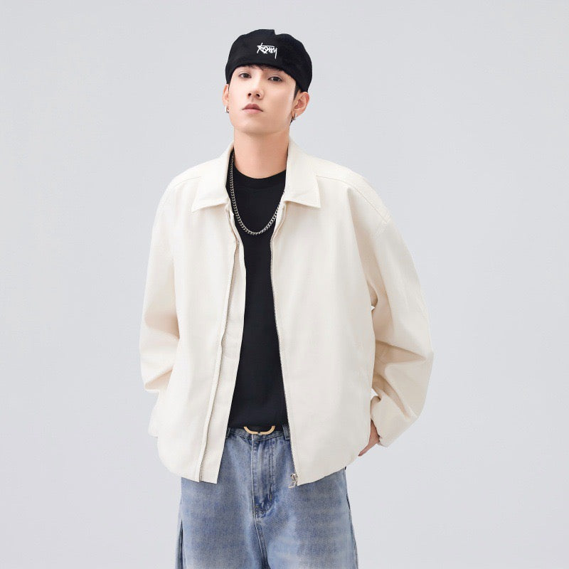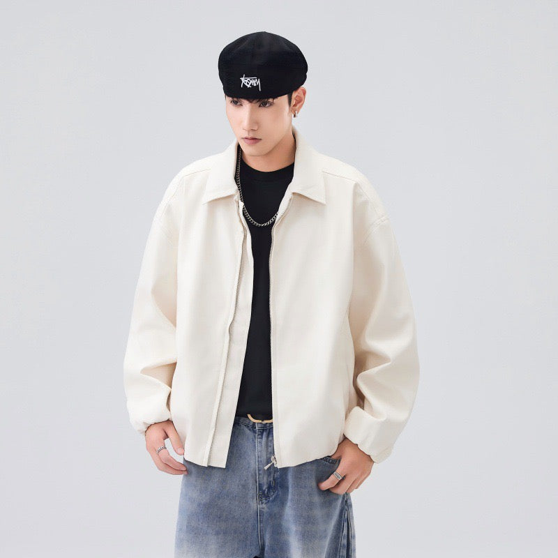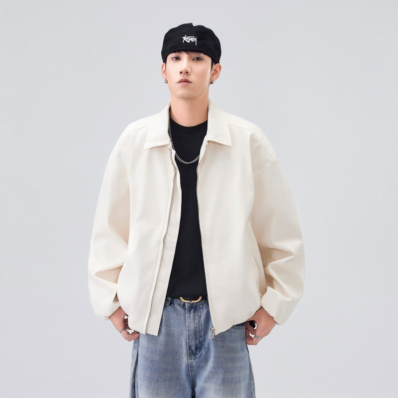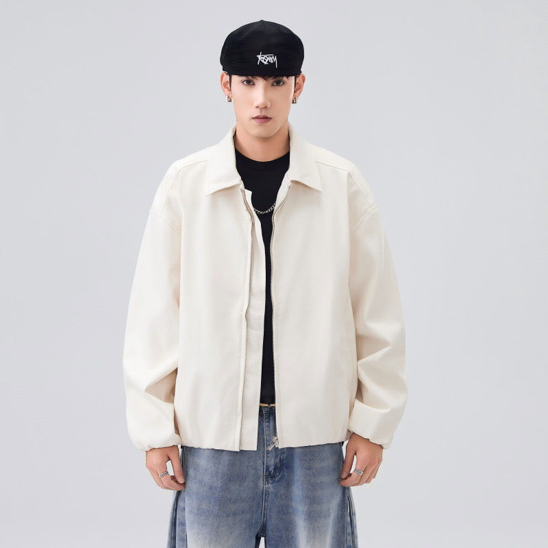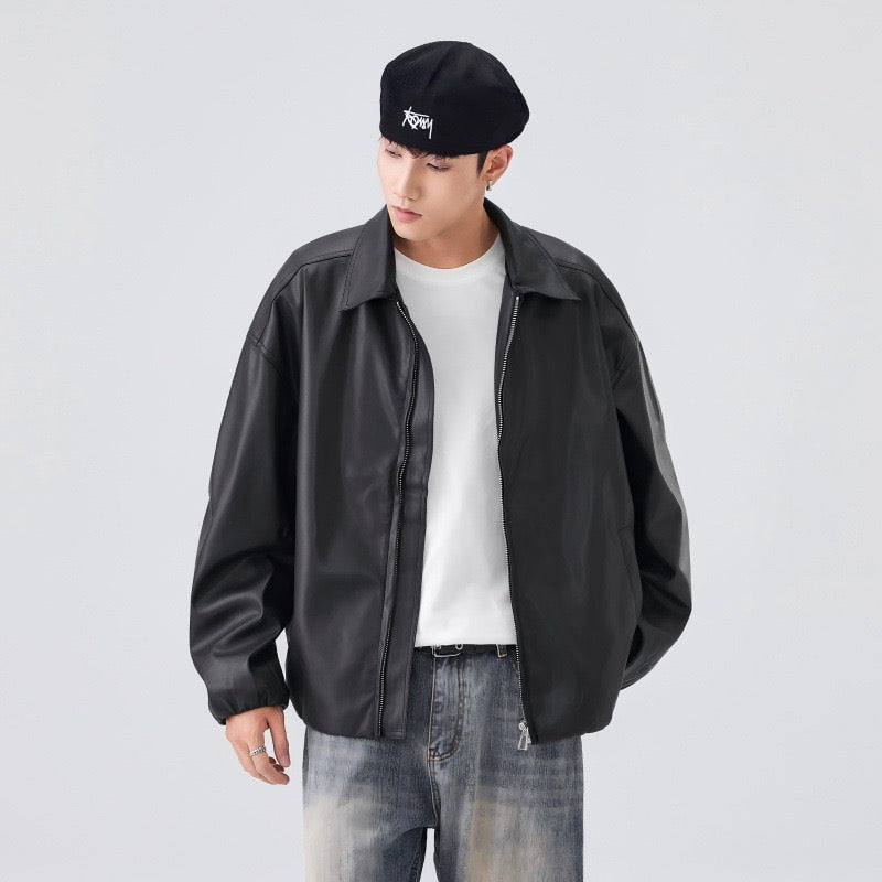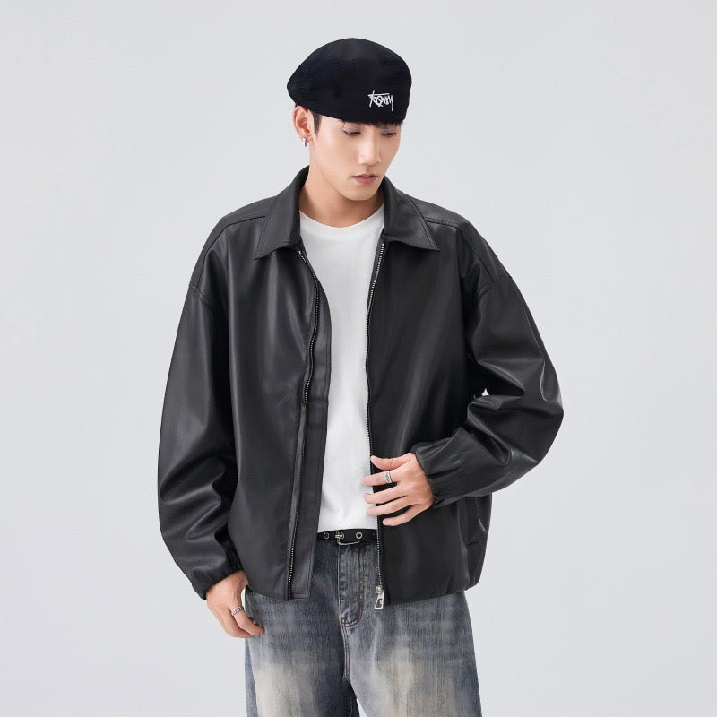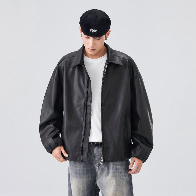 Maillard' Café Brown Vegan Leather Jacket | Retro Unisex Biker Coat with Dropped Shoulder